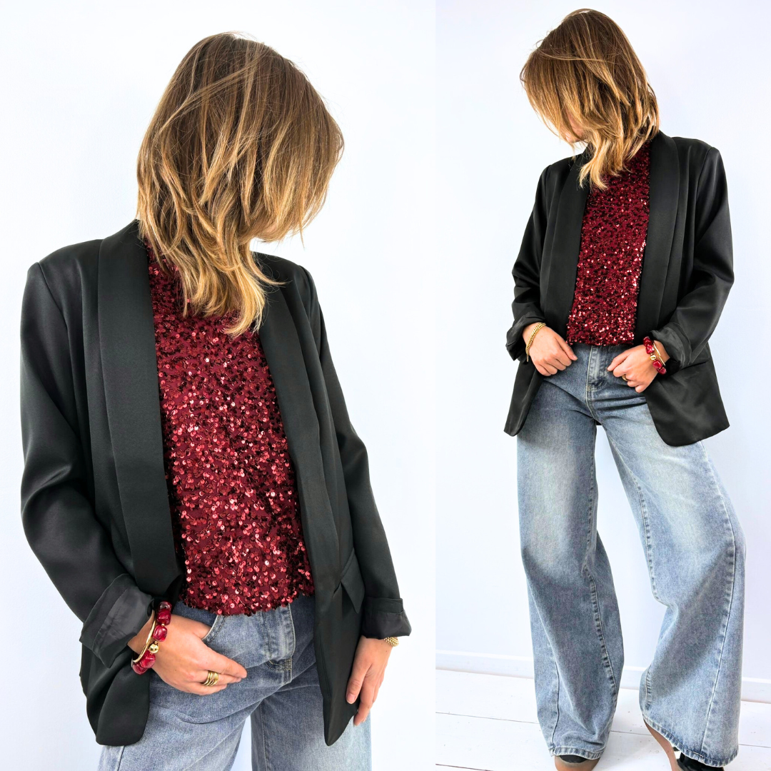 Ce blazer noir se distingue par sa coupe fluide et légèrement oversize, qui lui donne une allure moderne et ultra-versatile. Sa matière lisse et structurée apporte une touche chic sans rigidité, tandis que son tombé droit allonge naturellement la silhouette. Les manches souples et le revers classique permettent de le porter aussi bien ouvert que fermé, selon l’allure recherchée. Parfait pour sophistiquer un look décontracté ou accompagner une tenue plus habillée, Léonie est la pièce intemporelle qui élève immédiatement n’importe quelle silhouette.