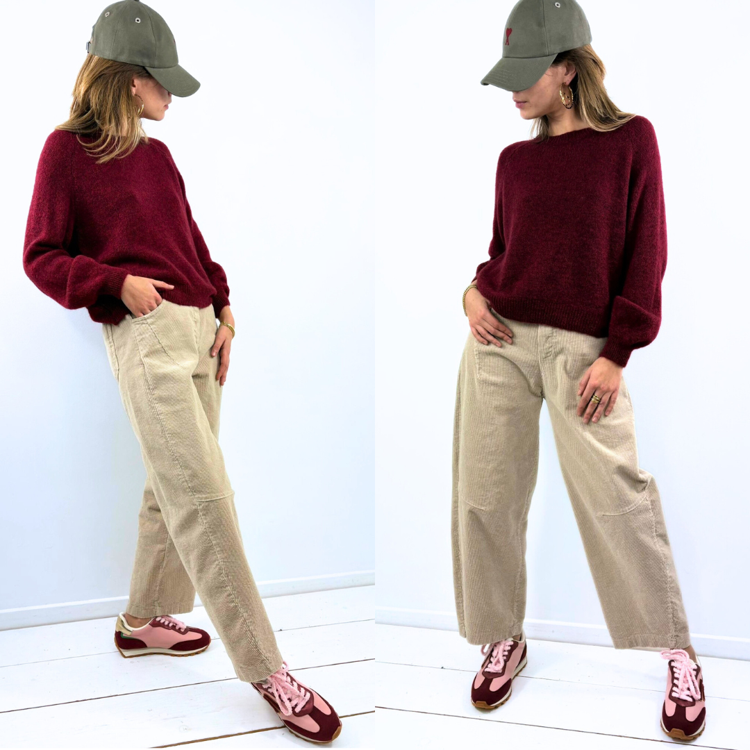 Le pull Ysaline est un pull bordeaux à l’élégance minimaliste, pensé pour celles qui aiment les pièces simples mais pleines de caractère. Sa maille douce et légèrement duveteuse apporte une chaleur réconfortante, tandis que sa coupe droite, subtilement ample, assure un tombé naturel et confortable. Le col rond classique équilibre la profondeur de la couleur, rendant ce pull facile à associer aussi bien avec un pantalon clair qu’un denim plus brut. Ysaline se distingue par sa sobriété raffinée : un essentiel intemporel, chaleureux et chic, qui traverse les saisons sans jamais perdre de son allure.